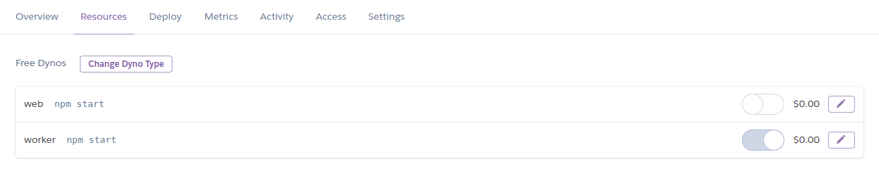回到 Heroku,進到 App > Resources Tab 然後關閉